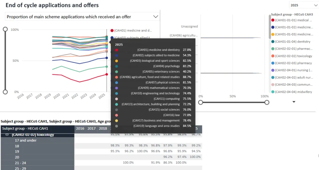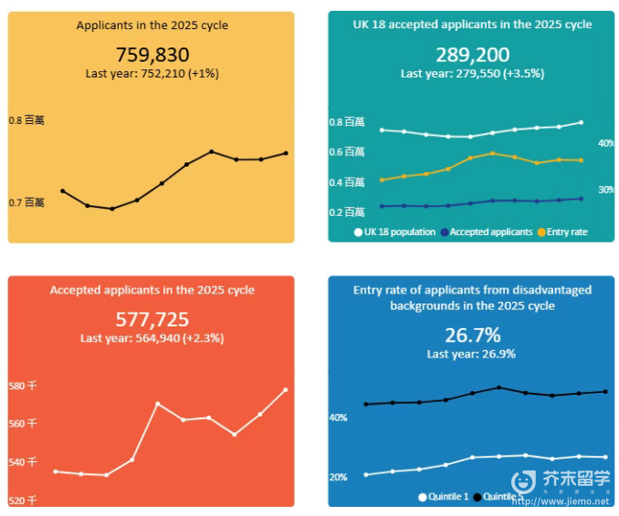 UCAS公布了2025年度英国本科完整招生报告,覆盖申请人数、申请份数、offer发放、最终入读、专业分布以及学生背景等核心信息。