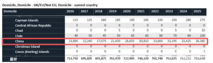 2025申请季,中国依然是英国本科留学国际生赛道的主力军,中国内地申请人数为36,385人,在所有来自非欧盟地区的申请者中,占比达到27.5%。